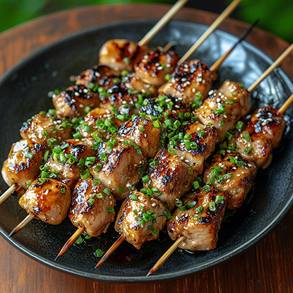 - Aseta vartaat lautaselle ja glaseeraa ne vielä kerran Yakitori-kastikkeella.